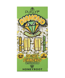 Honeyroot Wellness and Purlyf CBD have collaborated to craft the Diamond Collection Live Resin THC-X + Delta 8 cartridges, offering a unique experience.