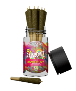 Experience the distinctive combinations: Banana Sherbet features THC-A + Delta-8 + HHC, GSC comprises HHC + Delta-8 + THC-P, Rainbowz offers HHC + HHC-O + THC-P, and Skywalker presents THC-A + HHC + THC-P. Each pre-roll, fashioned from Premium Hemp Flower, is coated in CBD Kief.